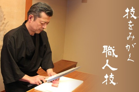 千葉県袖ケ浦市長浦にて生まれ育ち、鉛筆を持ち机に向かうよりも包丁を持ち、まな板に向かう方が私に向いていると思い、16歳より数々の日本料理店で修行を35年間積み、「開花屋」のオープンと同時に料理長に就任しました。