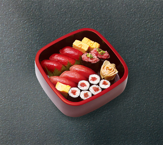 中とろ3貫・まぐろ赤身3貫・ねぎトロ2貫・鉄火巻・切玉子 以上10貫